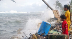 Although damage appeared modest around Majuro Atoll, people’s homes and yards were flooded with ocean water, roads at the international airport were temporarily impassible during peak flooding late afternoon Wednesday, and debris ranging from rocks and sand to garbage rolled onto roads and into yards requiring extensive clean up work.