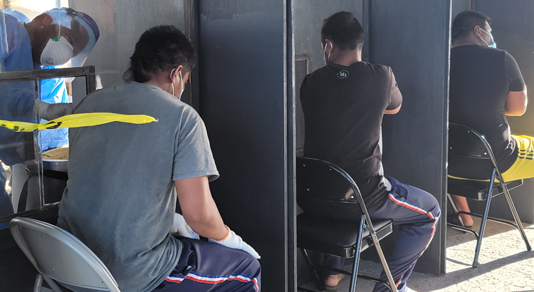 Officials had set up the secure area the day before, with stations for fishermen to wait for their shots, to receive their shots, and to wait for a 10-minute observation period afterward prior to being allowed to return to their vessels. Three public health nurses provided the immunizations from behind plexiglass dividers that had a small sliding window big enough for the person to place their arm next to it to receive the shot. Nurses employed the Johnson & Johnson brand vaccine as this is a one-shot vaccine.