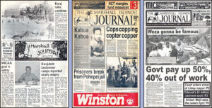 P3 Want water, get vodka RMI Customs agents Ruben Zackhras, Jr. and Dixon Kaminaga confiscated illegally imported goods that are being held at the Delap Dock in a locked container by the Ministry of Finance. Among the items held are bottle of vodka that a company attempted to import as “bottled water.” That effort was foiled when a Customs agent, thirsty while clearing a container, reached into one of the boxes, grabbed a bottle and started to swig it down. He was rather surprised at the taste of the “water.”