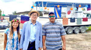 The $135,500 grant for a new boat was funded through Japan’s Grant Assistance for Grassroots Human Security Projects (GGP). The ceremony was attended by Arno Mayor Bernard Chong-Gum, Arno Irooj Katwel Jormelu and his wife, Aik Binejal, Executive councilman of Arno, Arno Atoll Local Government (AALG) council members, and others as well as officials of the Embassy of Japan.