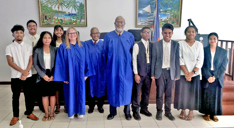 High school students engaged in the first-ever moot court competition where they were exposed to courtroom debate organized by the Public School System and the Marshall Islands Law Society at the International Conference Center at the end of April. The schools had only three days of preparation for the moot competition after a briefing about the competition earlier the same week at PSS.