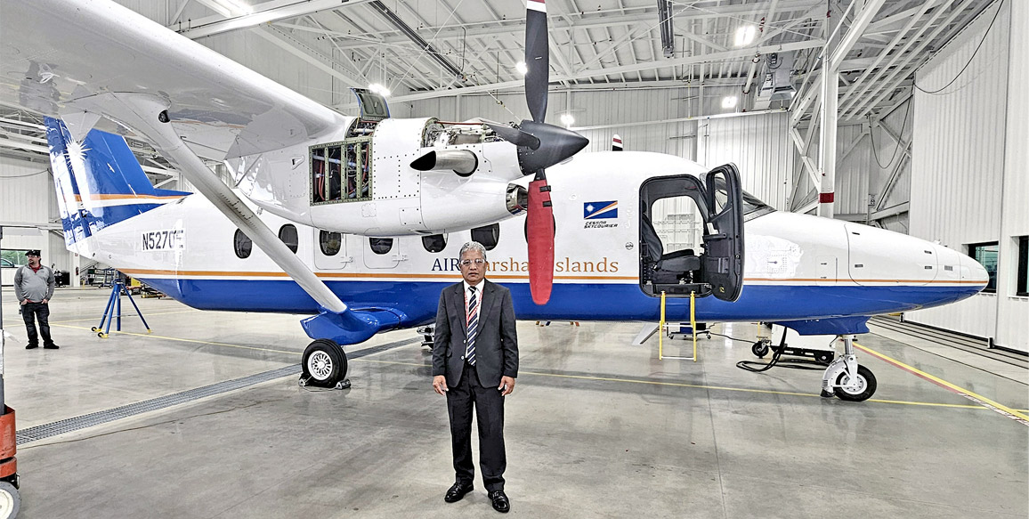 Air Marshall Islands CEO Captain Albon Jelke stands next to the new Cessna SkyCourier aircraft that will soon be put into service in the Marshall Islands.