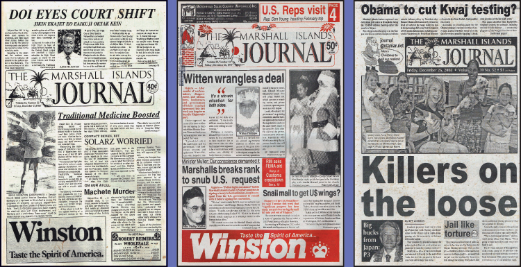 P4 Guinness Record from Marshall Islands Everyone has faced a pressing deadline before, and around a newspaper deadlines are a fact of life — although when the certainty of a power outage is hanging over you, it tends to make the blood pressure rise faster as the minute stick off a countdown to the cutoff hour. And so it was last week when Public Works announced it would be turning off electricity at 9:30 in the. Morning on Thursday, our day for putting the paper “to bed,” as the saying goes in journalese. At times it seems that the only thing that does run on time around here is power outages. Had it been just 15 minutes behind schedule, an interesting bit of trivia would have found its way into the Journal. But a kun jarom tends to wreck havoc with technology: our discs are wiped clean if we don’t judge the time correctly, and. Our fingers stopped in mid-flight as all this advanced technology just yawns at us —± perhaps grateful for a break the outage provides. On Thanksgiving Day, while you might have been having a family dinner with turkey and ham, trout with the “boys” drinking a beer, or just putting your feet up and watching a rerun, an event certainly worthy of enshrinement in the Guinness Book of World Records was taking place right here in the Marshall Islands. On that fateful day, while most of the Marshalls was enjoying a holiday, four newspapers were published on the same day. That’s right, four. Micronitor cannot take credit for all, but it can claim to have published 75 percent. The first off the press was the Marshall Islands High School Focus, followed closely by Assumption High School’s Ri-Meto. The last off the press that evening was the Journal. The fourth you ask? Why the Kwajalein Hourglass published by the missile range.