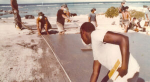 “If the Cactus crater concrete containment structure on Runit Island were located in the United States, it would be formally classified as a Low-Level Radioactive Waste Disposal Site and be subject of stringent site management and monitoring practices,” wrote Dr. Terry Hamilton, the lead US government scientist working for the Lawrence Livermore National Laboratory in California who began the first monitoring of the dome over 30 years after it was constructed. “A long-term groundwater monitoring program would almost certainly form an integral part of these activities,” Hamilton added in a report on the dome issued in early 2014 as he began to study the dome for the first time, following passage of a law by the US Congress mandating regular monitoring of the Runit Dome. Photographs from the construction of the Runit Dome in the 1978-1980 period show that the Cactus crater acted as a large swimming pool, filled with ocean water that went up and down with the tides. The porous nature of a coral atoll allows ocean water to seep in and out during daily high and low tides.