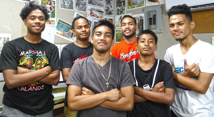 Posing here for your viewing pleasure from left: Mackson Jobwa, Preacher Lemari, Michio Maddison, Emilio Maddison, Sailas Benjamin and Moses Langinlur.